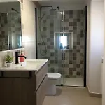 Denna lägenhet vetter mot bergen. Badrummet har separat toalett och dusch.